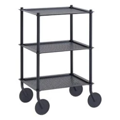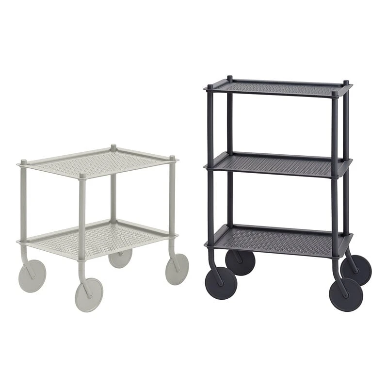La desserte Flow de Muuto se caractérise par un design simple et élémentaire et une construction robuste. C’est une véritable pièce polyvalente qui trouvera sa place dans les maisons, les bureaux et les espaces publics. Conçue par Normal Studio, cette desserte en acier monochrome est une aide précieuse lorsque vous souhaitez servir le petit-déjeuner au lit ou emmener des boissons d’une pièce à l’autre en toute sécurité. En plus d’être un chariot de service, Flow convient aussi parfaitement comme table d’appoint portable, support pour plantes ou étagère de rangement dans n’importe quelle pièce.