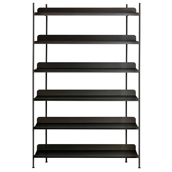 Compile, conçu par Cecilie Manz, est un système d’étagères minimaliste et fonctionnel qui se compose de simples tablettes en acier découpé au laser et de tubes de séparation. Son design attrayant se caractérise par une finition mate en poudre et des coins arrondis qui lui confèrent un look léger et aérien. Sturdy Compile fait office de cloison de séparation, de module d’étagère individuelle ainsi que de système de stockage de grande taille dans les espaces privés et publics.