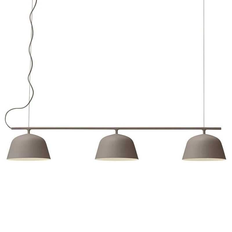 Le luminaire Ambit Rail de Muuto est la nouvelle version des lampes de billard classiques de TAF Studio. Le design minimaliste se compose d’une rangée de trois abat-jour simples, déjà présents dans la suspension Ambit, et d’un rail métallique horizontal suspendu par deux fils d’acier. La finesse des fils crée l’illusion amusante d’une lampe flottante et l’intérieur blanc des abat-jour en aluminium filé reflète la lumière de manière agréable. La suspension Ambit Rail constitue un excellent choix au-dessus d’un îlot de cuisine, d’une table à manger et d’une table de réunion.