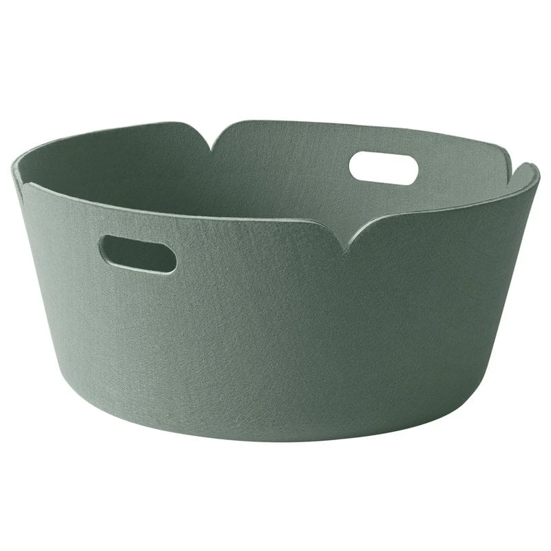 Le panier rond Restore de Muuto constitue le contenant idéal pour le bois de chauffage, le linge, les jouets, les textiles ainsi que les journaux. Il mesure 23,5 cm de haut et 52 cm de diamètre.