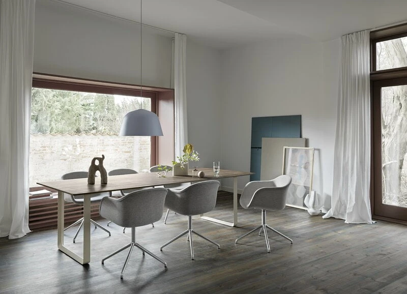 La table 70/70 de Muuto incarne la simplicité scandinave avec son design aux lignes épurées, tout en apportant un souffle nouveau avec un soupçon de géométrie futuriste. La table se compose d’un plateau en chêne magnifiquement fini reposant sur des pieds métalliques minimalistes qui mesurent 70 x 70 cm, d’où le nom 70/70. En regardant de plus près, les pieds de la table révèlent également un détail surprenant : leur forme triangulaire subtilement géométrique. Conçue par TAF Studio, la table 70/70 convient à une grande variété d’espaces, des cuisines et salles à manger aux bureaux et salles de conférence.